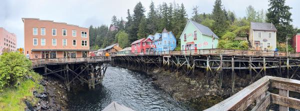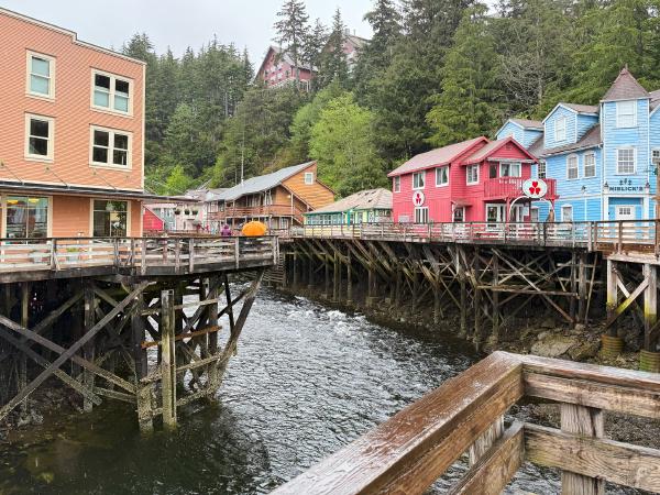 Ketchikan was our 4th stop. We got to tour the downtown city and Creek Street and then took a bus tour around. Along the bus tour we got to stop and see some Eagles on the beach. We went further down to where we could stop at the beach and saw a ton of sea stars and pools of water from the low tide (and some dogs running on the beach). From there we went to a place where the salmon will swim upstream and there are a lot of bears, but we did not see any. Our final stop was at a waterfall nearby.